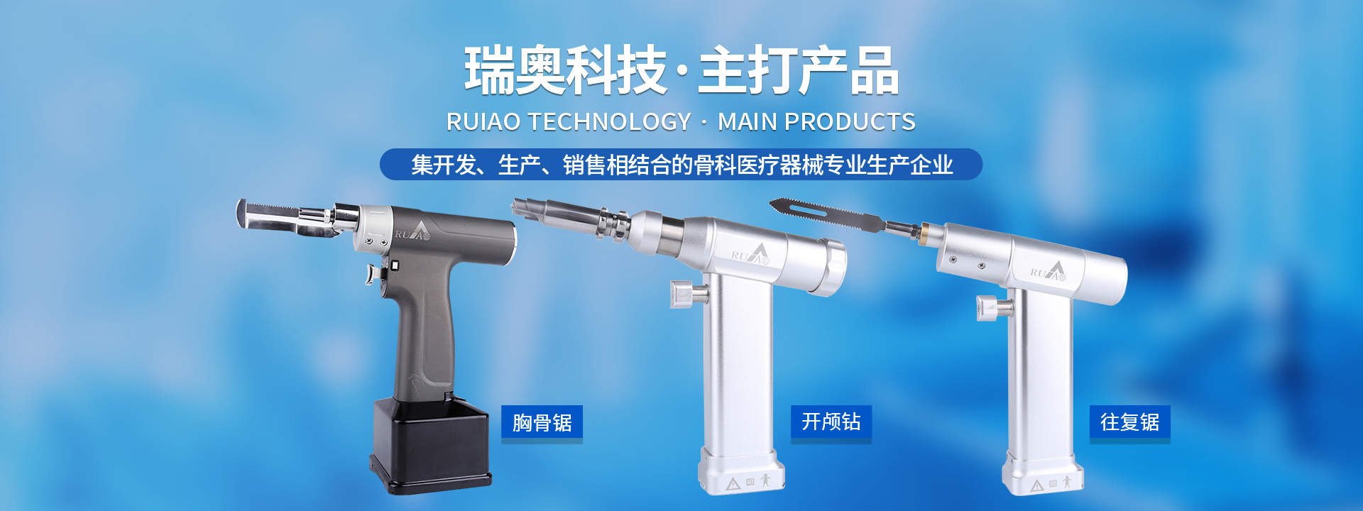 鹽城瑞奧科技有限公司主要產(chǎn)品:醫(yī)用電動鋸鉆系列(可高溫高壓消毒和熏蒸消毒兩種):包含骨鉆、擺鋸、胸骨鋸、空心骨鉆、開顱鉆、顱骨銑等等,適用于骨科、腦外科、神經(jīng)外科、胸外科、手足及顯微外科、脊柱外科、整形外科等各種手術(shù)的要求。電動石膏鋸可切割高分子繃帶、石膏等?;A(chǔ)器械系列:咬骨鉗,髓核鉗,椎板咬骨鉗,持骨鉗,四肢骨折手術(shù)器械包等。